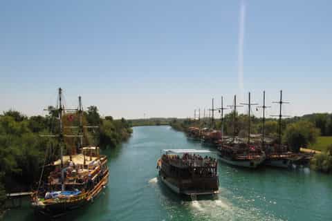 Take a day cruise on the Manavgat River from Side, with hotel pickup and drop-off. Make stops to swim, see the Manavgat waterfall, and visit a Turkish market, then enjoy lunch served on board.