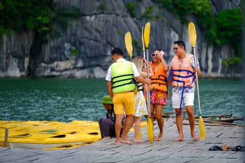 => Visit: Lan Ha Bay, Dark & Bright cave, Cat Ba island area or Pearl farm OR Cave in island, Kayaking/Swimming around pure water area/islets/rocks.